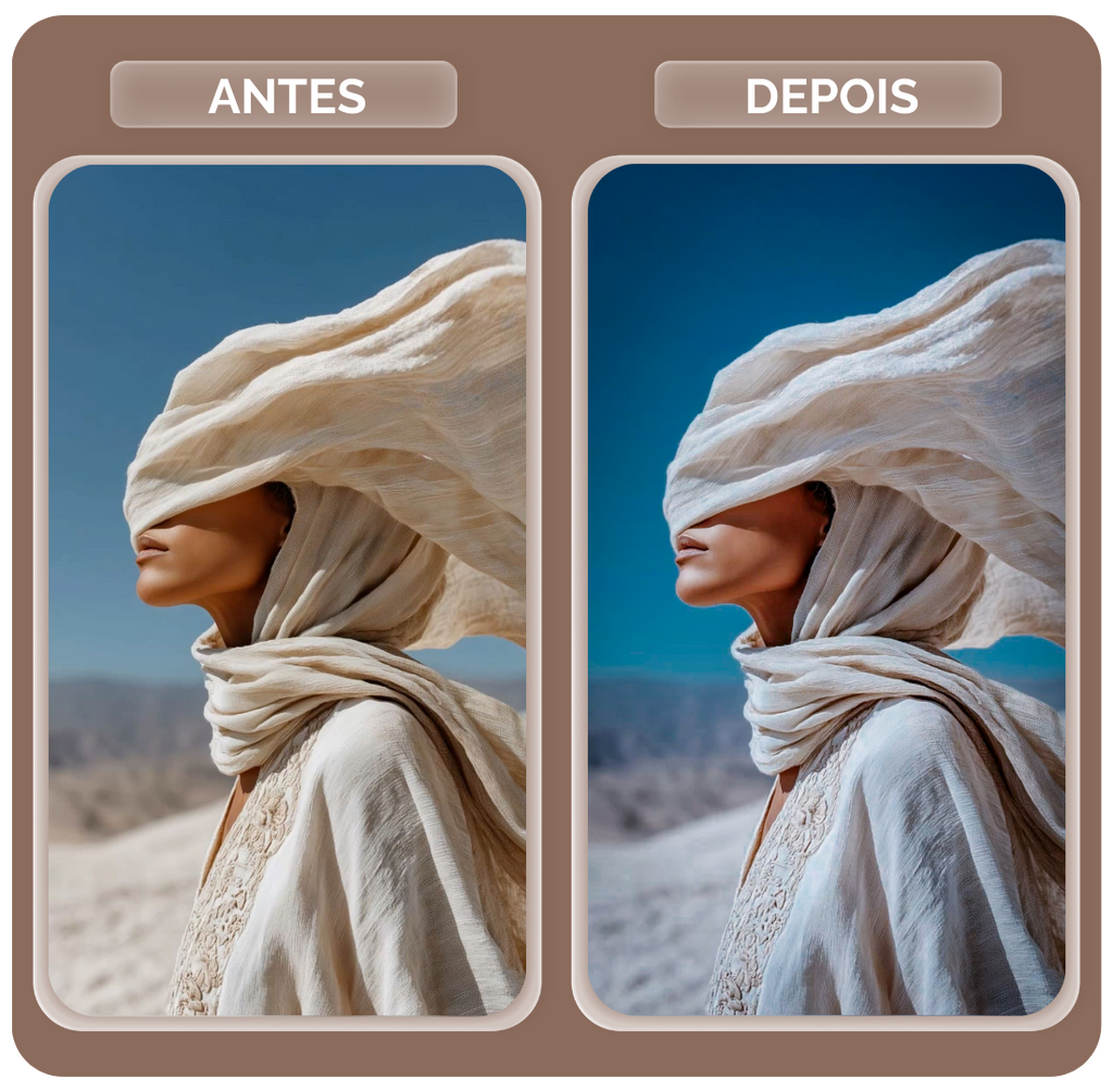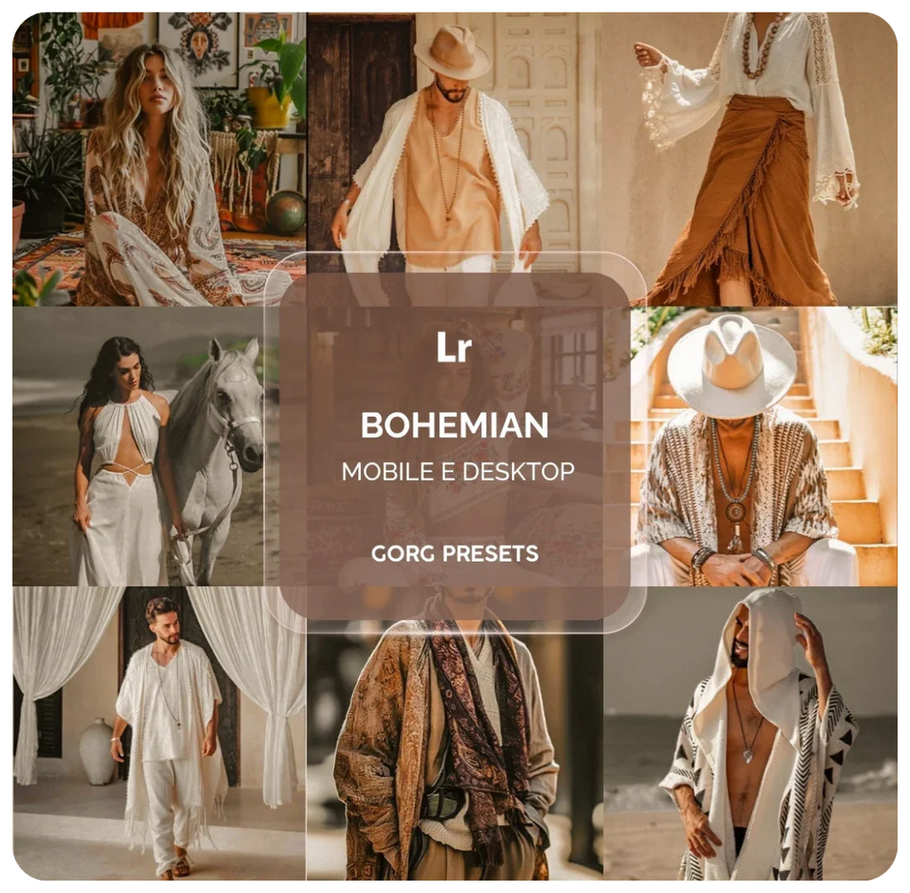 O pack BOHEMIAN traz a alma livre e artística para as suas fotos. Inspirado na estética desértica e no lifestyle vintage, ele transforma as cores em tons quentes e terrosos, com um toque de "creme" nos brancos e uma dessaturação elegante nos azuis. É o preset perfeito para criar imagens que transmitem paz, liberdade e um estilo de vida orgânico, com aquele acabamento suave e nostálgico que amamos.