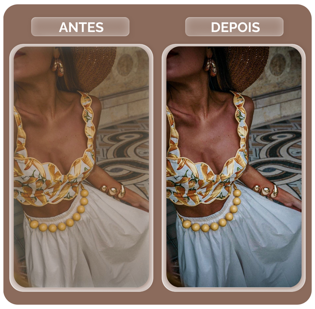• 10 Presets Profissionais (Focados em tons de terracota, palha e areia).