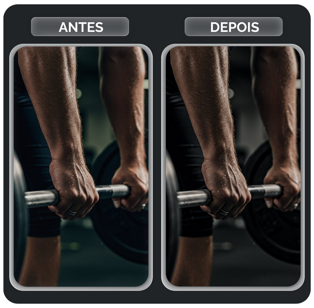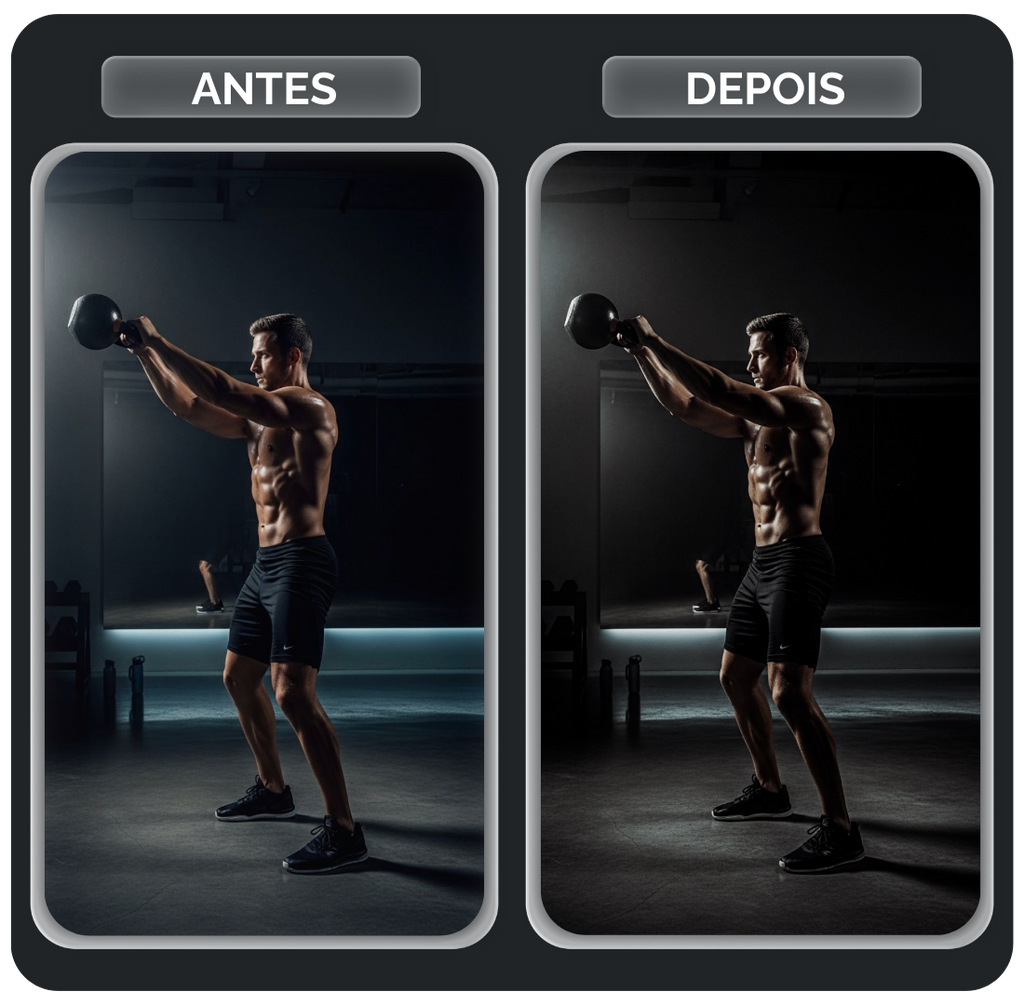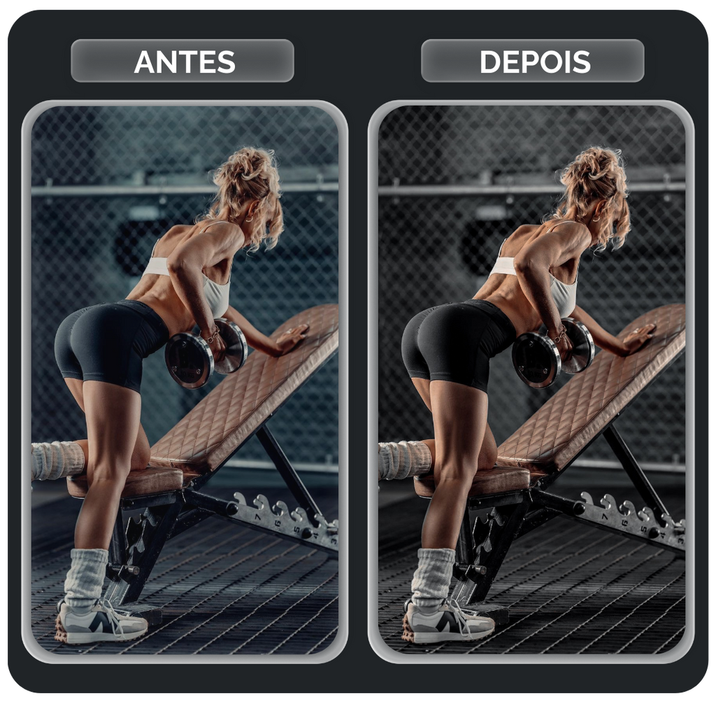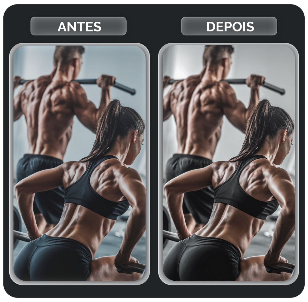 O pack FITNESS foi projetado para quem quer ver o resultado do treino brilhar na foto. Ele atua aumentando a definição muscular, realçando as sombras para dar mais profundidade aos contornos do corpo e trazendo uma nitidez agressiva. Perfeito para fotos em academias com luz artificial ou treinos ao ar livre, este pack entrega aquela estética de "atleta profissional", destacando cada detalhe do seu foco e dedicação.