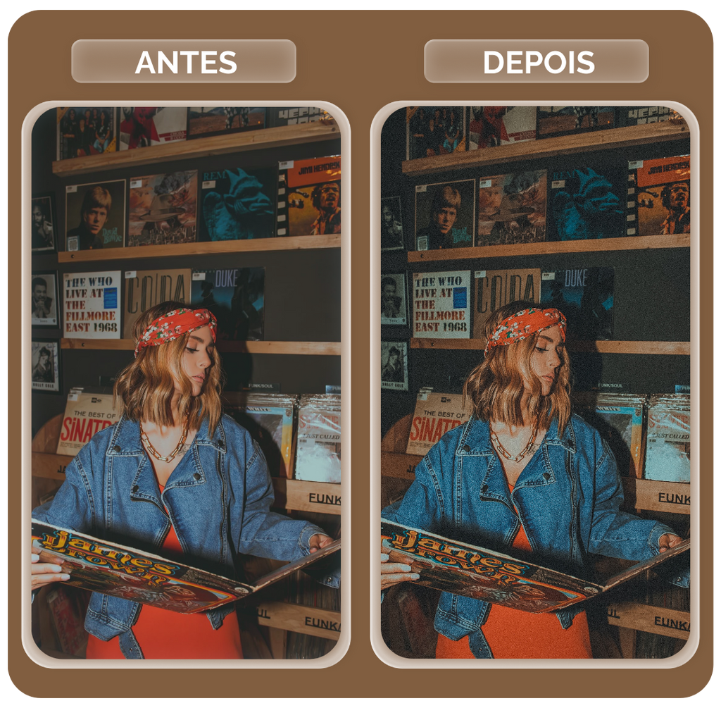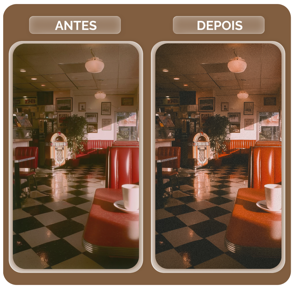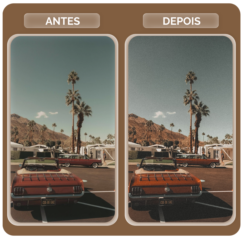 O pack RETRO traz de volta a alma da fotografia analógica das décadas passadas. Com foco em cores levemente desbotadas, sombras quentes e aquele granulado charmoso, este pack transforma suas fotos digitais em memórias nostálgicas cheias de história. É a escolha perfeita para quem busca um visual autêntico, artístico e com aquele toque "vibe" que domina as redes sociais.